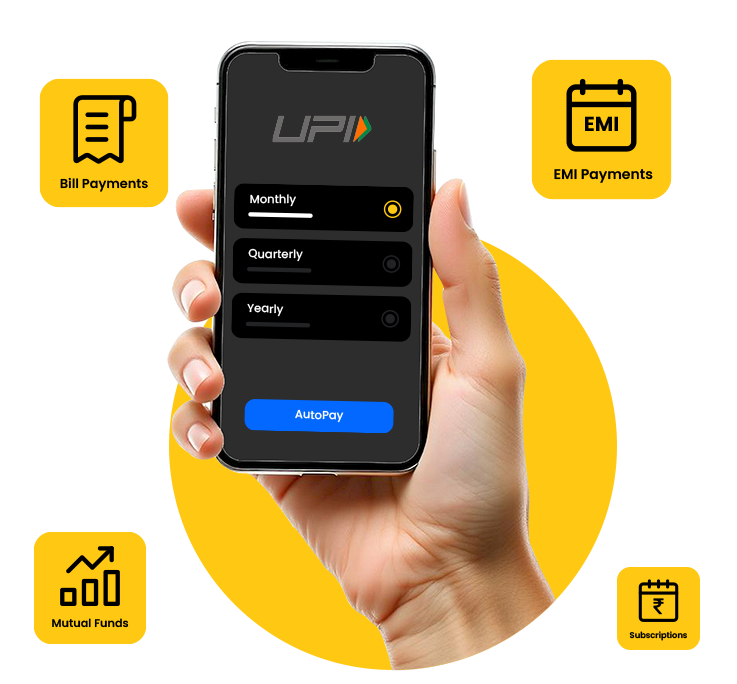 UPI Autopay allows you to set up automatic payments for subscriptions, bills, and services, freeing you from the worry of missed deadlines- A Smarter Way to Pay.